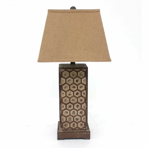 7 x 7 x 28.5 Brown Industrial With Honeycombed Metal Base - Table Lamp