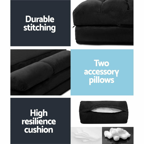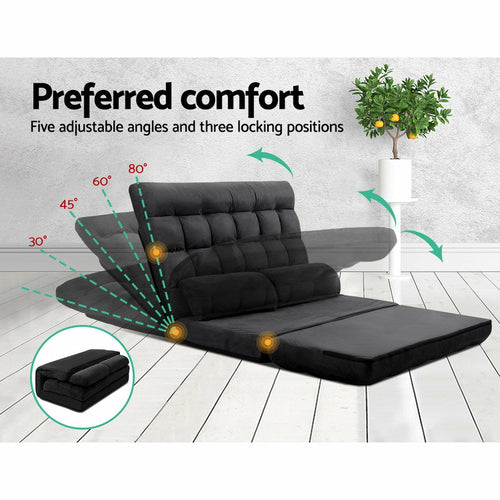 Artiss Lounge Sofa Bed 2-seater Floor Folding Suede Charcoal