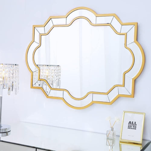 Large Gold Mirror for Wall Decor, Irregular Decorative Wall Mirror