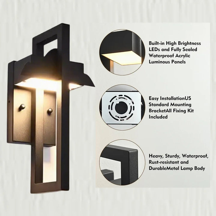 [ Modern Design ] The clean lines, modern style, and minimalist design of LamQee's outdoor wall lights highlight their unique geometric shapes, complementing contemporary architectural styles; outdoor wall sconces integrated LED emits a warm white light, providing excellent illumination that brightens outdoor spaces without causing glare, creating a comfortable ambiance