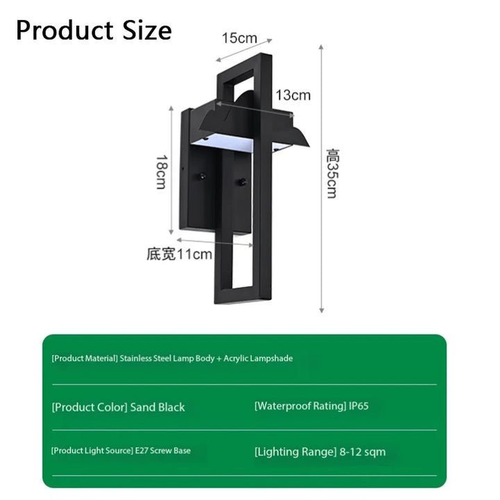 Modern LED Outdoor Wall Lights E27 Decorative Lighting Black Wall Lamp 12W IP65 Waterproof wall lamps outdoor lighting home