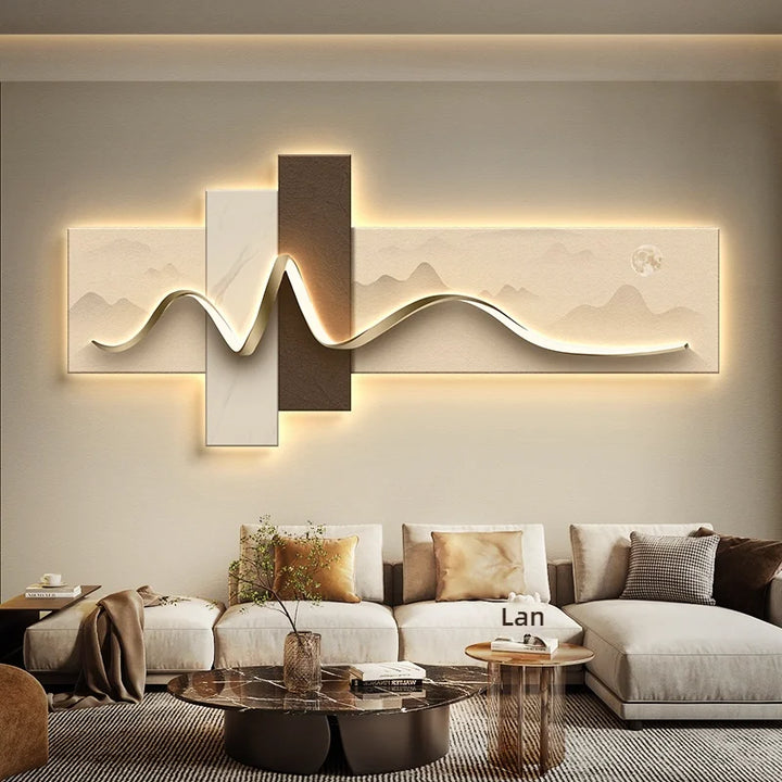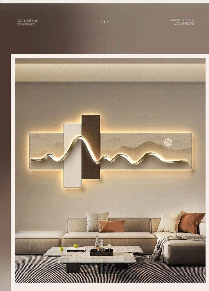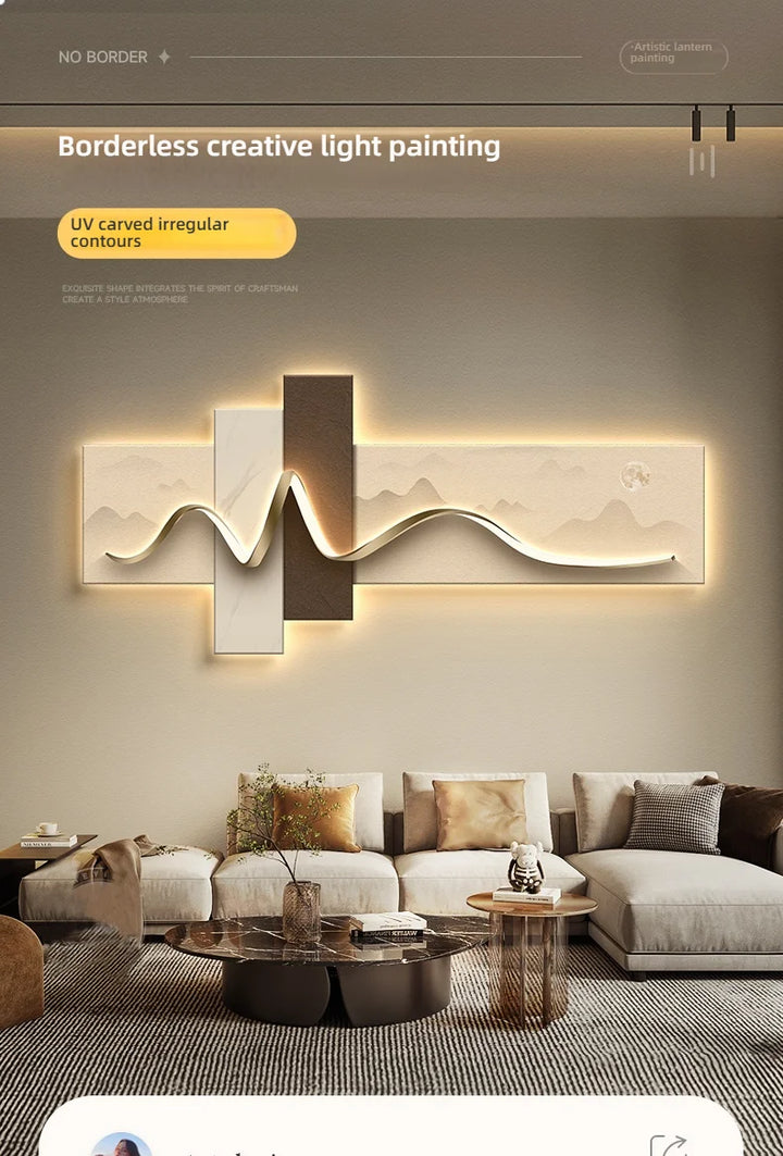 Modern Light Luxury Wabi Sabi Style LED Decorative Painting Home Decoration Living Room Bedroom Sofa TV Background Mural Light