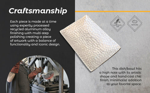 ARTWORK. This dish/bowl hits a high note with its artistic shape and hand-cast chic finish, minimalist addition to your favorite space. Make it special down to the last detail.