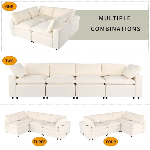 Upholstered Modular Sofa with with Storage Space, USB Charge