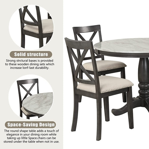 Wood 5-Piece round Dining Table Set with Cushioned Chairs